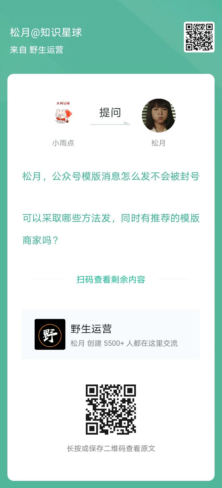 3、提问:公众号模版消息怎么发不会被封号,同时有推荐的模版商家吗?(扫码看全文)