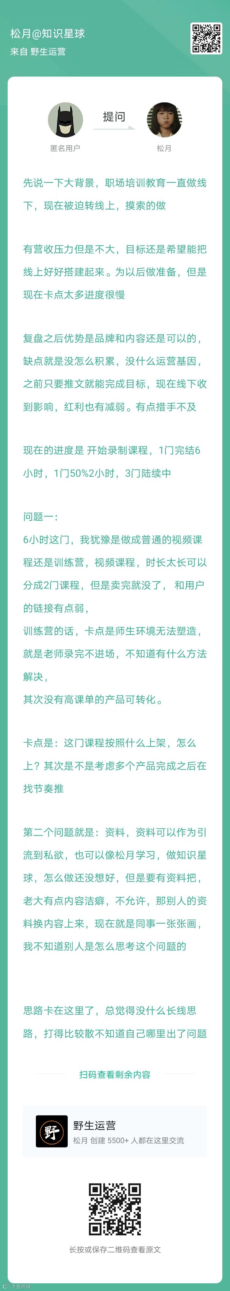 4、提问:关于成人培训线上运营的几个问题想请教?(扫码看全文)