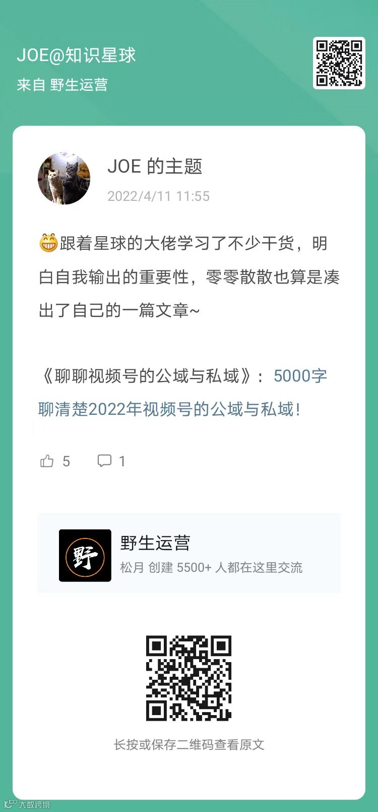 2、JOE:聊聊视频号的公域与私域(扫码看全文)
