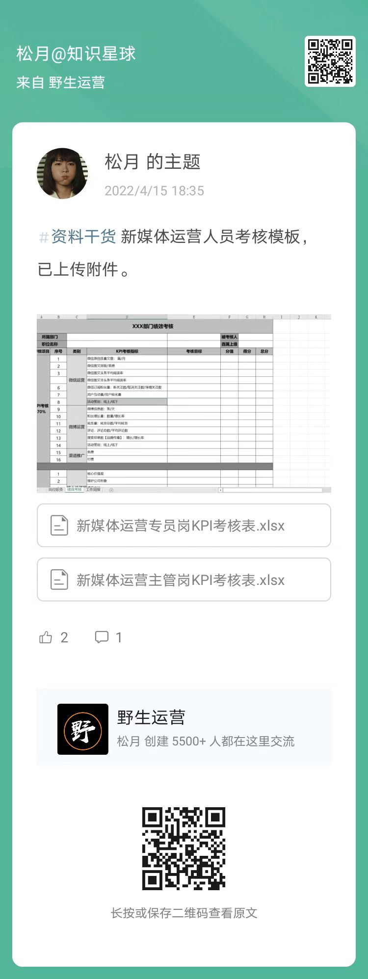 17、松月:新媒体运营人员考核模板(扫码看全文)