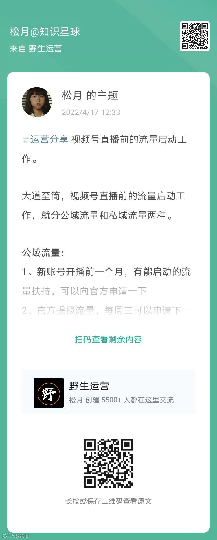 25、松月:视频号直播前的流量启动工作(扫码看全文)