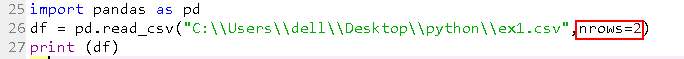 如果只想读取几行(避免读取整个文件),通过nrows进行制定即可。