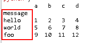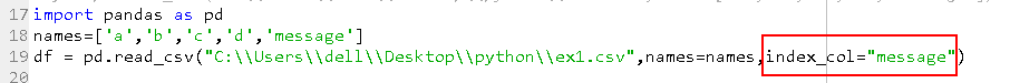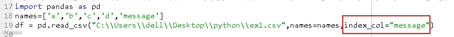 3、将某一列作为索引,比如使用message列做索引。通过index_col参数指定’message’。