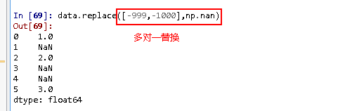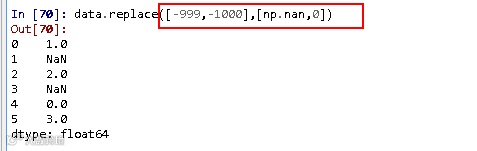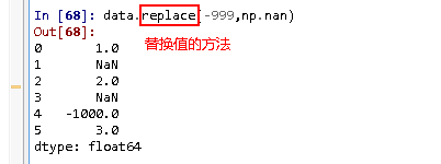 (1)数据替换,将某一值或多个值用新的值进行代替。(比较常用的是缺失值或异常值处理,缺失值一般都用NULL、NAN标记,可以用新的值代替缺失标记值)。方法是replace。