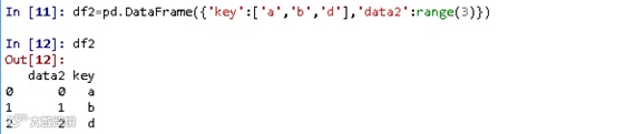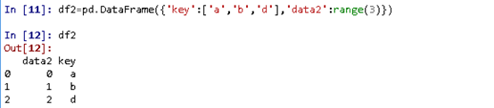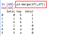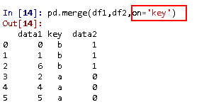 当没有指明用哪一列进行连接时,程序将自动按重叠列的列名进行连接,上述语句就是按重叠列“key”列进行连接。也可以通过on来指定连接列进行连接。