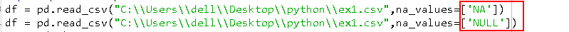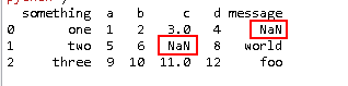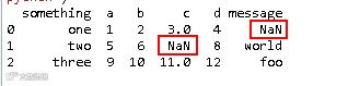 5、文本中缺失值处理,缺失数据要么是没有(空字符串),要么是用某个标记值表示的,默认情况下,pandas会用一组经常出现的标记值进行识别,如NA、NULL等。查找出结果以NAN显示。