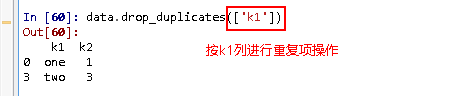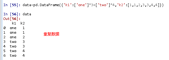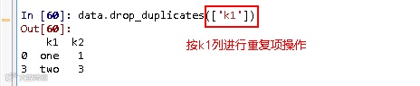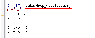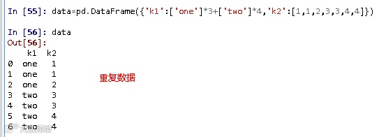 利用drop_duplicates方法,可以返回一个移除了重复行的DataFrame.