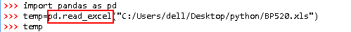 直接使用read_excel(文件名路径)进行获取,与读取CSV格式的文件类似。