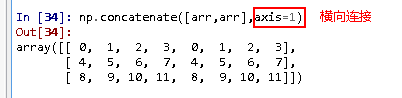 轴向连接,默认是在轴方向进行连接,也可以通过axis=1使其进行横向连接。