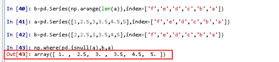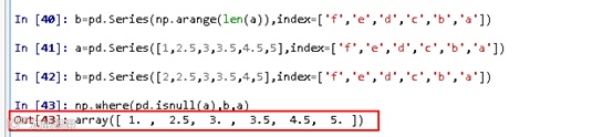 对于索引全部或部分重叠的两个数据集,我们可以使用numpy的where函数来进行合并,where函数相当于if—else函数。