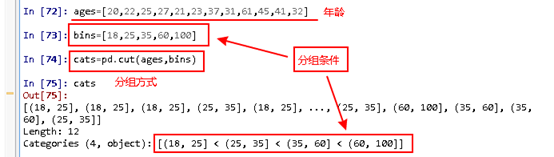 (2)离散化或面元划分,即根据某一条件将数据进行分组。