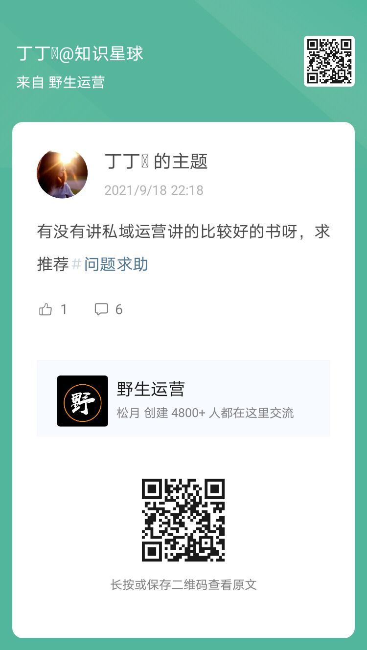 5、提问:有没有讲私域运营讲的比较好的书呀,求推荐?(扫码看全文)