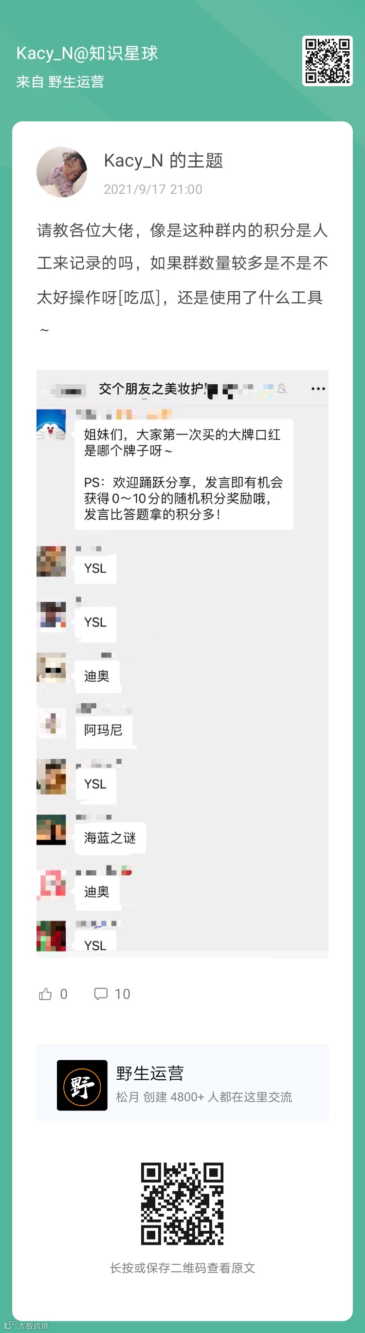 4、提问:群内的积分是人工来记录的吗,还是使用了什么工具?(扫码看全文)