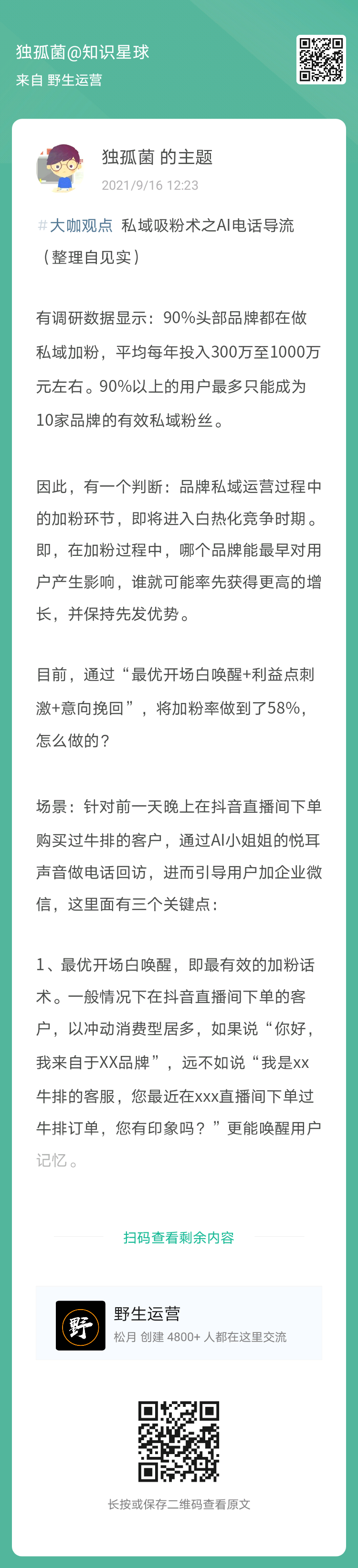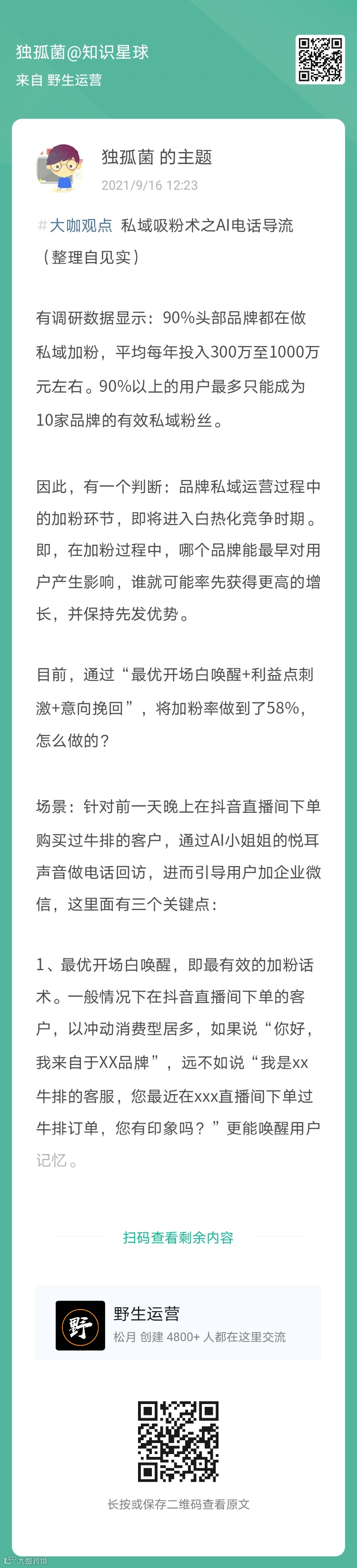 13、独孤菌:私域吸粉术之AI电话导流(扫码看全文)