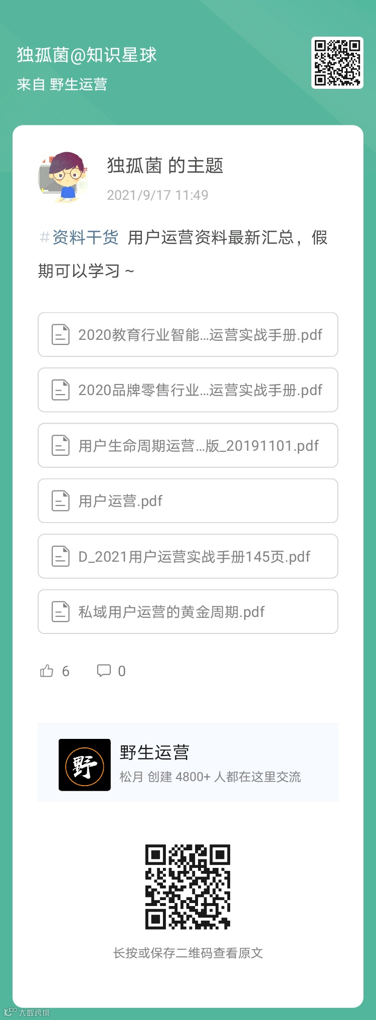 17、独孤菌:用户运营资料最新汇总(扫码看全文)