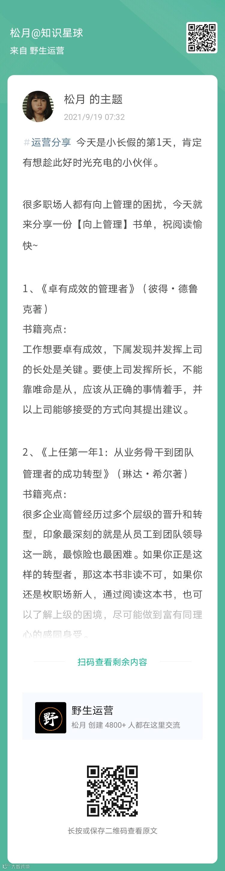 18、松月:很多职场人都有向上管理的困扰,分享一份【向上管理】书单(扫码看全文)