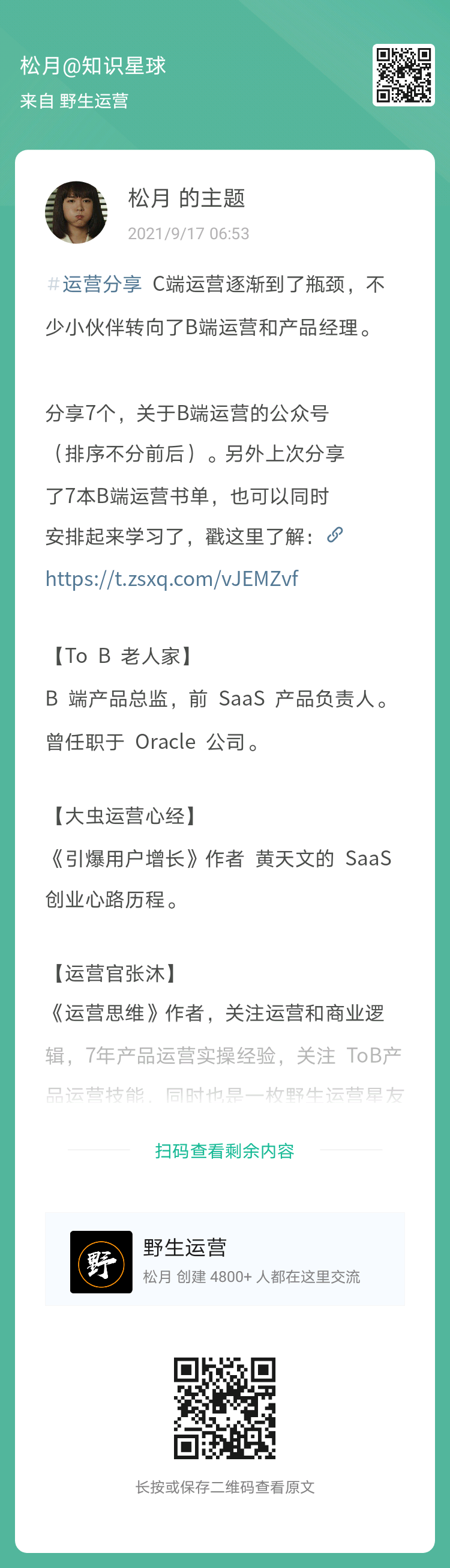16、松月:分享7个,关于B端运营的公众号(扫码看全文)