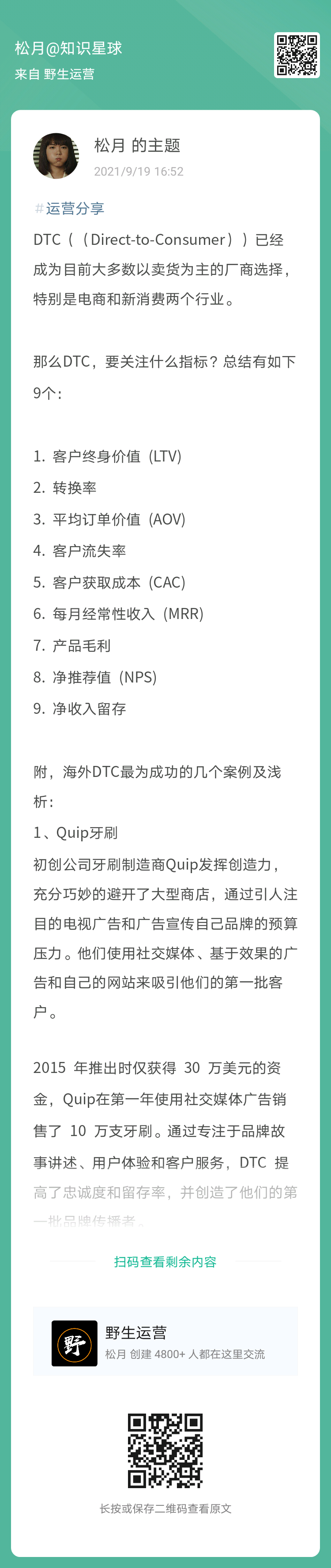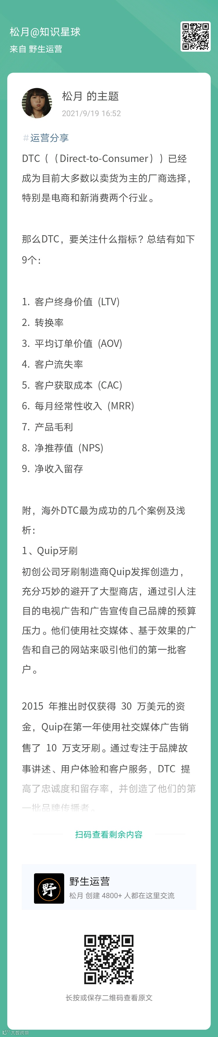 19、松月:DTC要关注什么指标?总结有如下9个(扫码看全文)