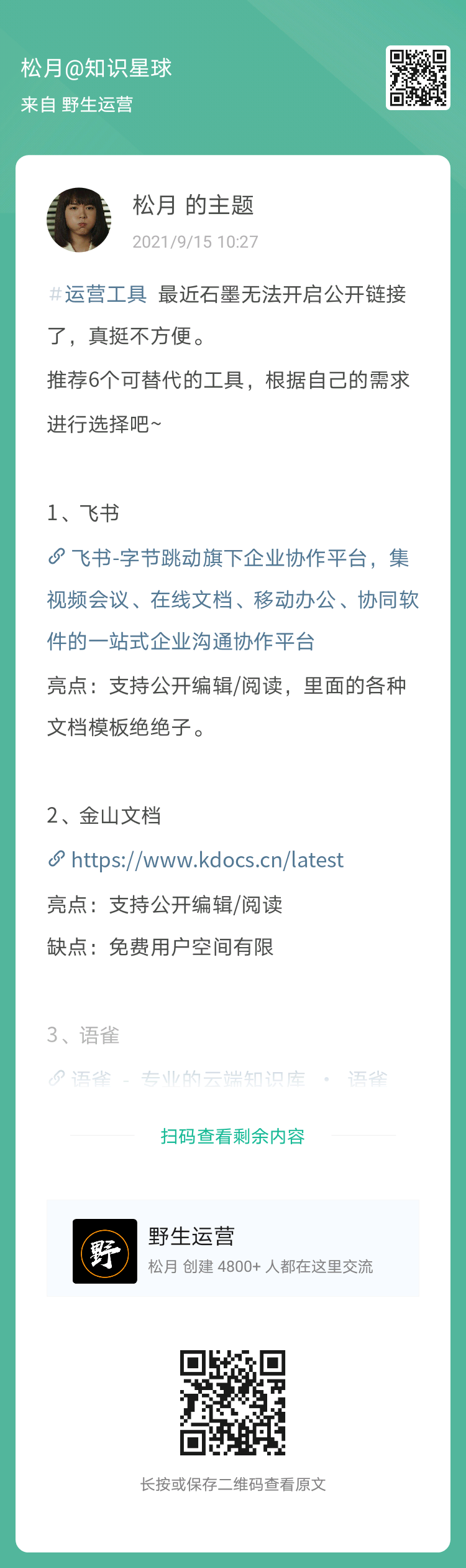 10、松月:推荐6个可替代石墨文档的工具(扫码看全文)