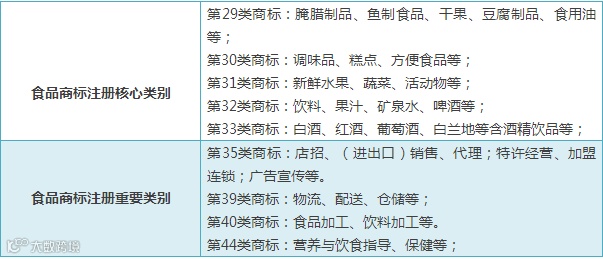 企业在注册商标时,首选的注册类别应该是与产品或服务自身属性相关的类别。例如,生产加工熟食的企业,至少应在第29类食品和第30类方便食品上进行注册。