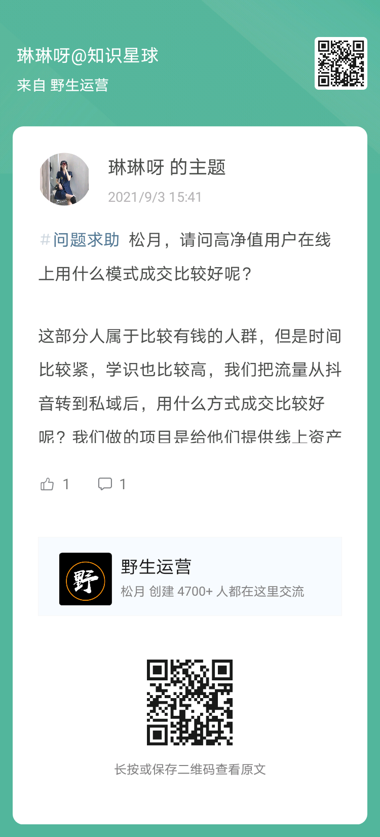6、提问:高净值用户在线上用什么模式成交比较好呢?(扫码看全文)