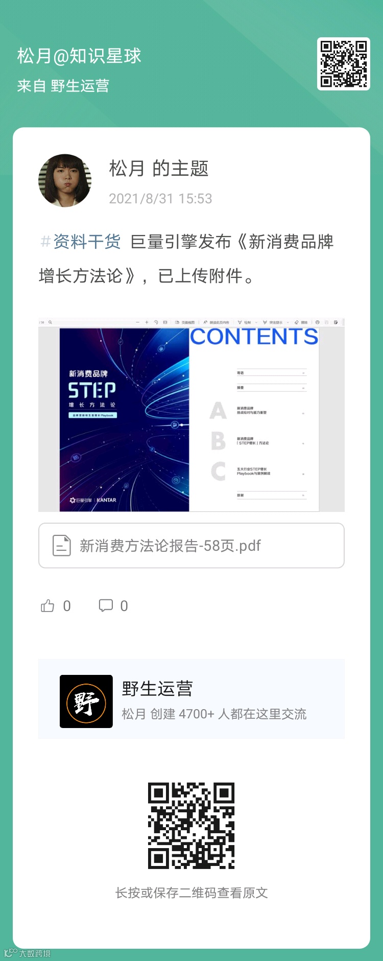 野生运营知识星球,每周会产生大量精华内容,每周一为你整理《野生运营:一周星球内参》,不让你错过任何一条有价值的信息。话不多说,这就开始!