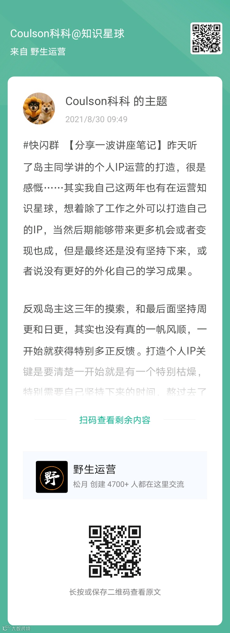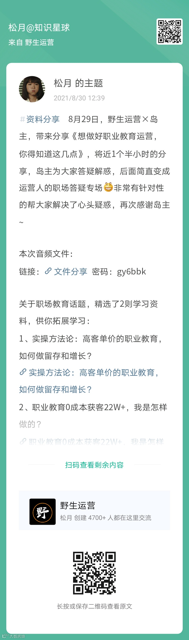 1、野生运营×岛主,快闪分享《想做好职业教育运营,你得知道这几点》(扫码看全文)