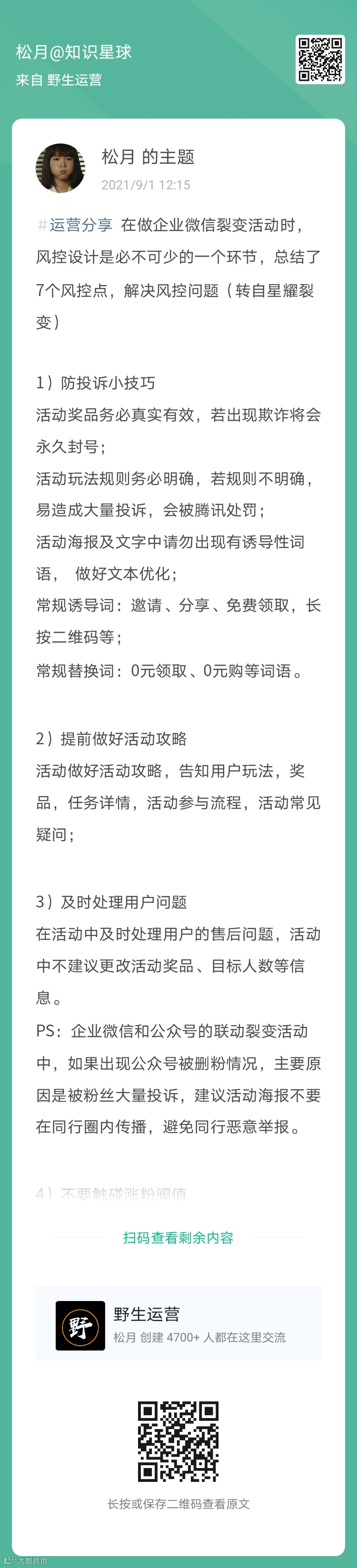 13、松月:做企业微信裂变活动时,7个需注意的风控点(扫码看全文)
