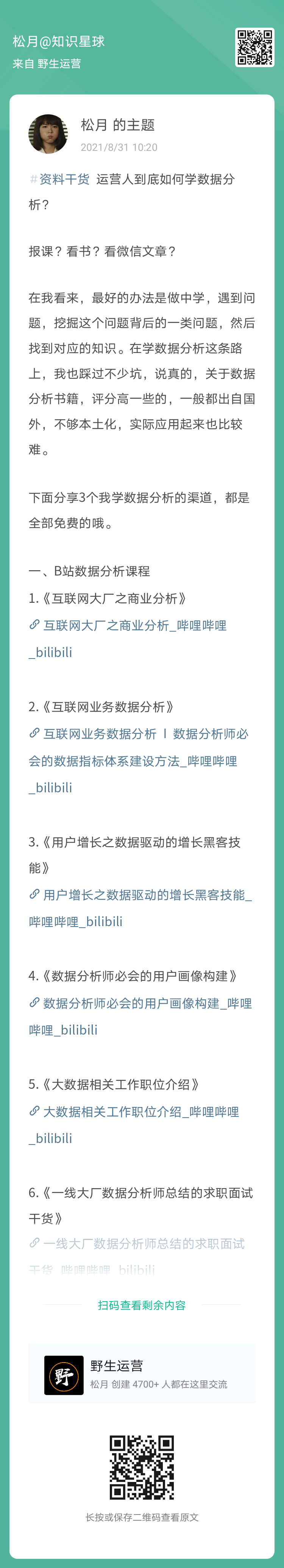 7、松月:运营人到底如何学数据分析?(扫码看全文)