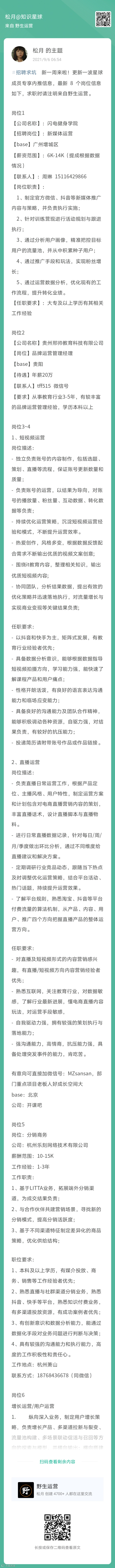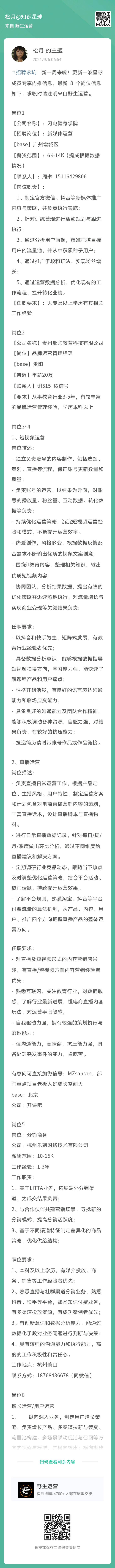 新一周来啦,照例发一个【求职招聘】需求池,有需要招聘和求职的小伙伴带 #招聘求坑 标签发布内容,希望招聘方能招到优秀人才,优秀的运营人er能找到好人家~