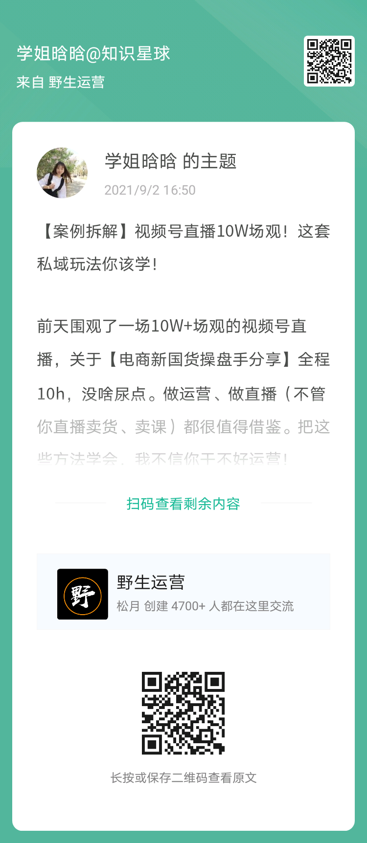 18、学姐晗晗:视频号直播10W场观!这套私域玩法你该学!(扫码看全文)