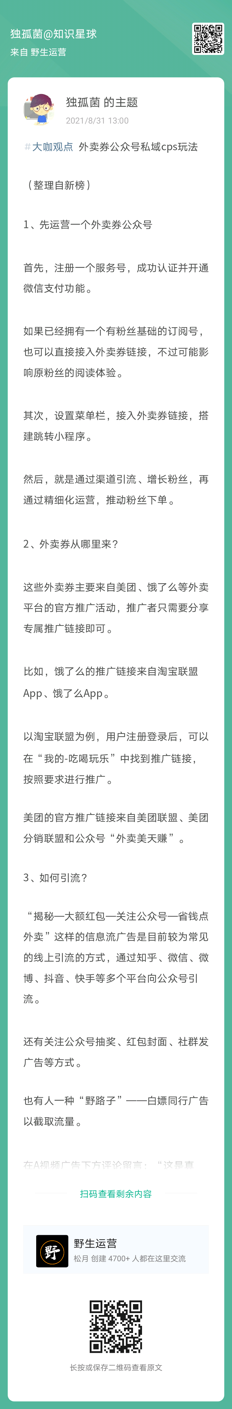 10、独孤菌:外卖券公众号私域cps玩法(扫码看全文)