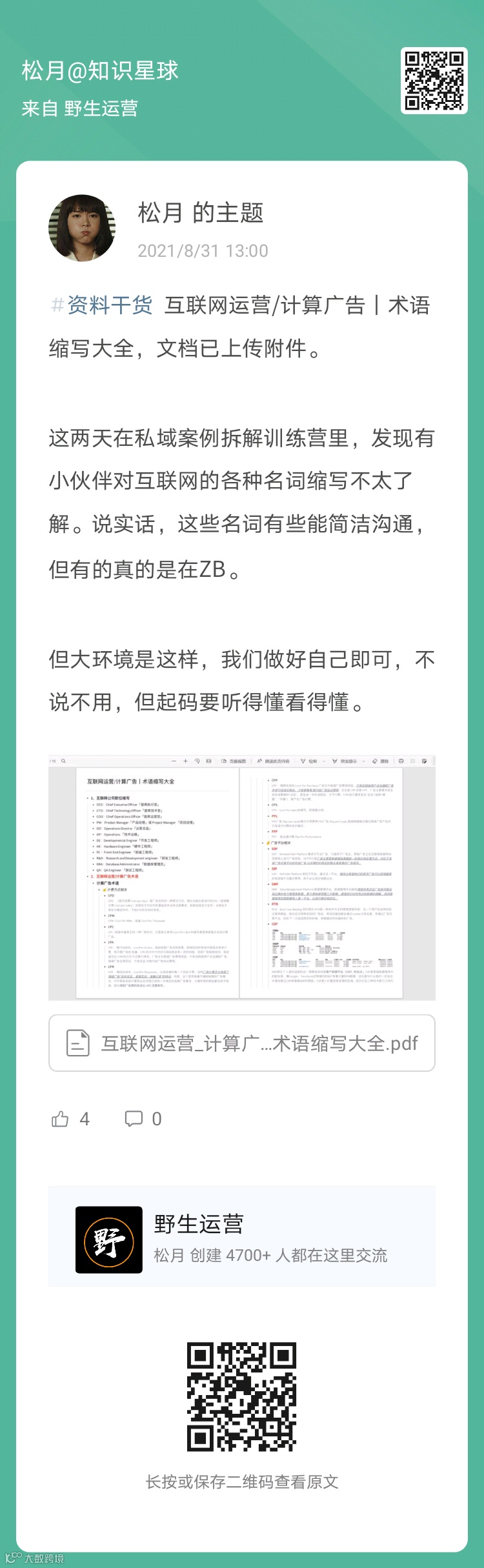 9、松月:互联网运营/计算广告|术语缩写大全(扫码看全文)