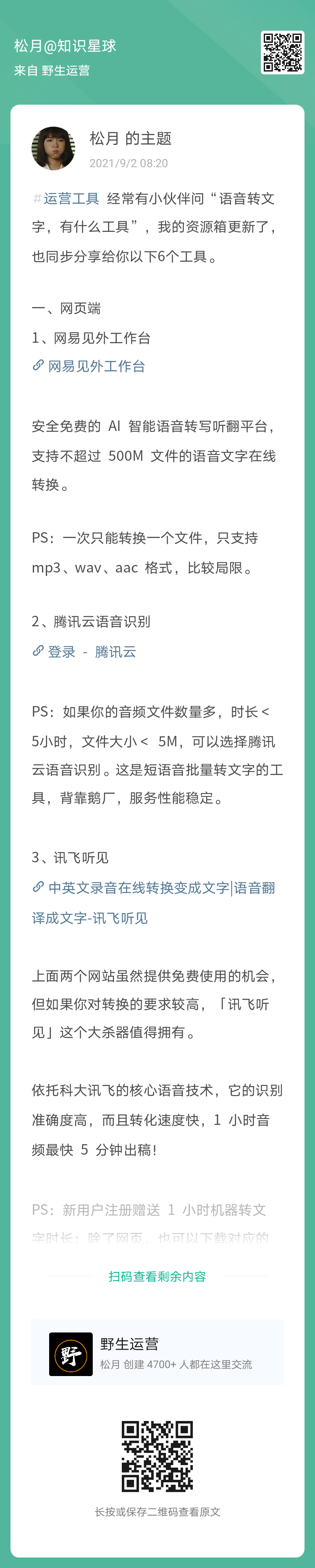 17、松月:语音转文字,分享6个工具(扫码看全文)