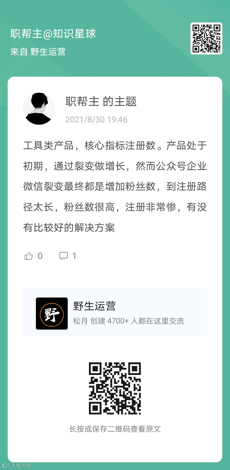 2、提问:工具类产品,核心指标是注册数,但通过裂变做增长,注册链路比较长,有没有好一些的解决思路?(扫码看全文)