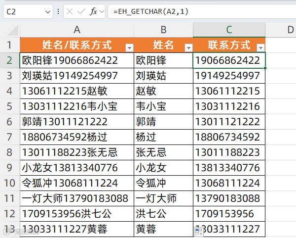新来的实习生把数据弄得乱七八糟,像这样的数据,如何快速提取姓名和联系方式?