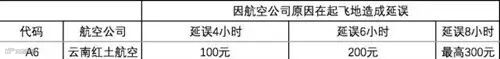 方案三 因航空公司原因在起飞地延误超过4小时(不超过6小时)赔偿XX元,延误超过6小时(不超过8小时)赔偿XX元,延误超过8小时赔偿XX元