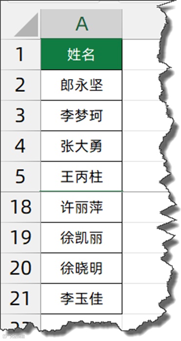 公式中的SORTBY(A2:A21,RANDARRAY(20))部分,先使用RANDARRAY(20)得到20个随机小数,再使用SORTBY以随机小数为排序依据对A列姓名进行随机排序。