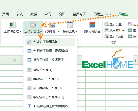 新建一个WPS表格文件,点击易用宝,工作表管理,合并工作表。