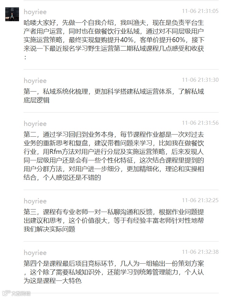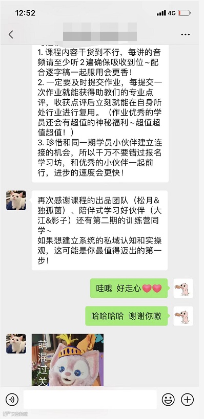 说真的,这个系统课把我们这个小团队摩擦的不行,这两天采访了前3期的部分学员,得到了超出预期的评价,一切努力没白费: