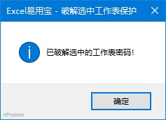 弹出已破解选中的工作表密码,点击确定,现在就可以编辑工作表了。