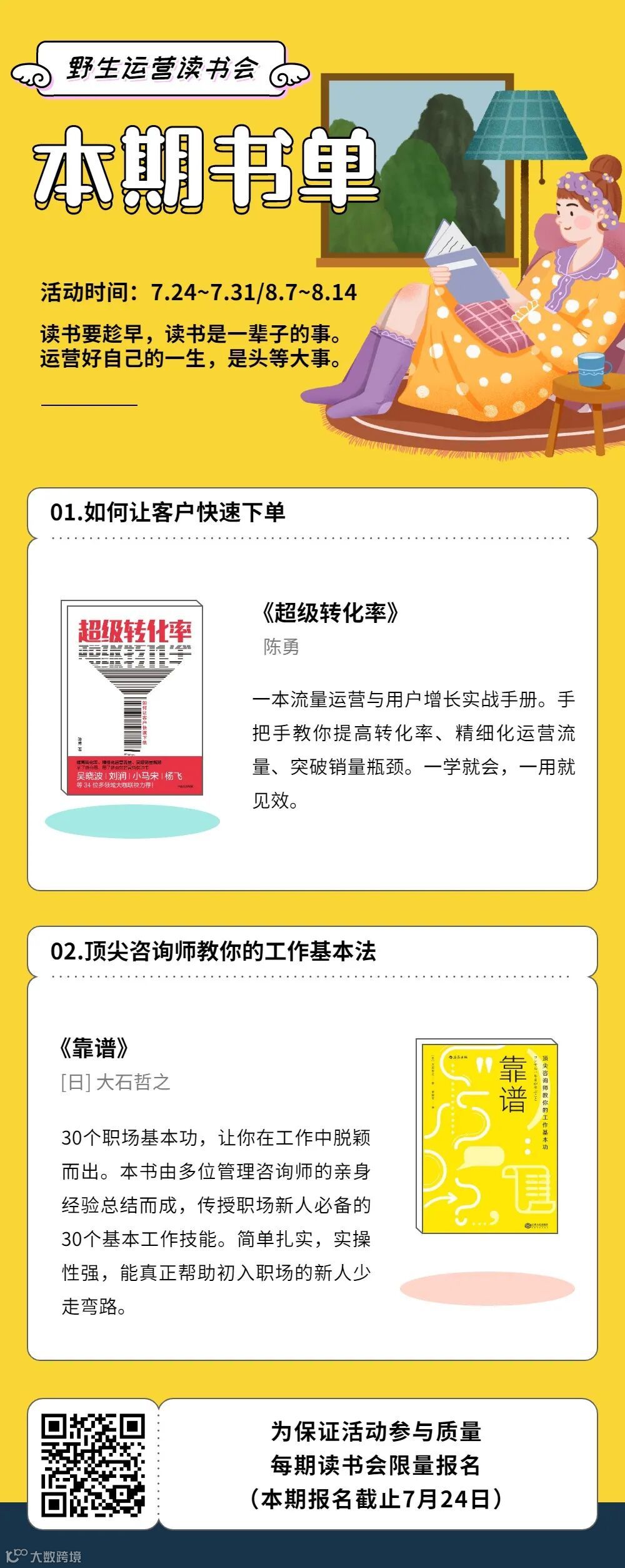 下期读书会我们一起共读《超级转化率》和《靠谱》,明天开始共读,报名截止至今晚8点,报名扫码咯:
