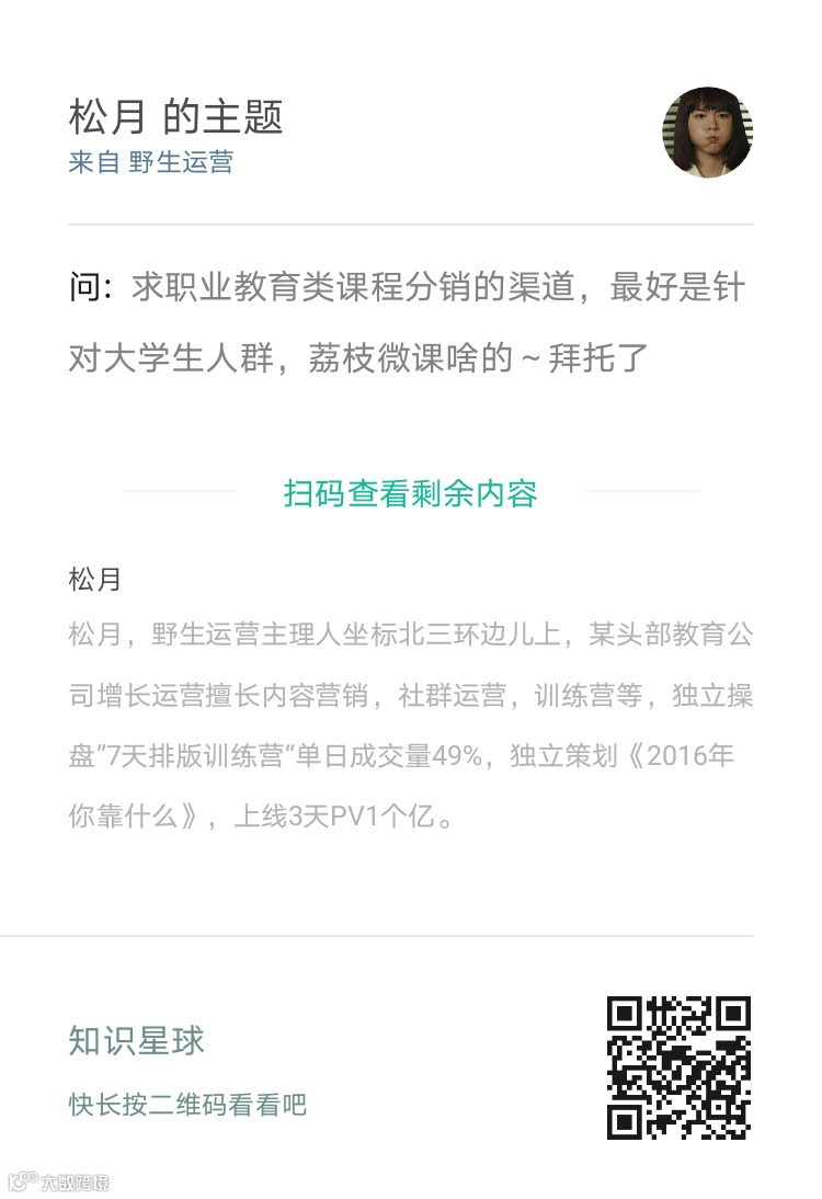 添加主理人松月微信,备注进群,邀请你加入在线教育社群,获得教育圈最新动态、最强玩法和精准人脉。