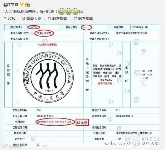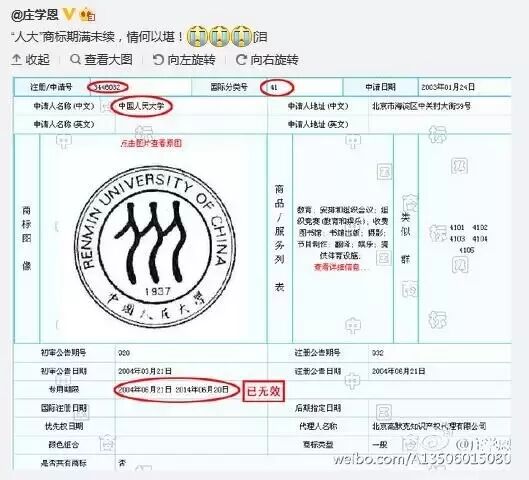 二、就算人大在教育类别不续展,试问还有哪家可以用这个标?微博里有朋友发出疑问?我也很想知道.