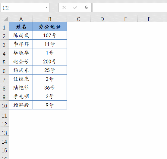 下图中,如果对B列的办公地址按升序排序,猜猜会是什么样的呢?