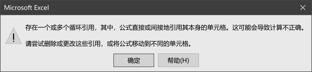 默认情况下,Excel 禁止使用循环引用,因为公式中引用自身的值进行计算,将永无休止地计算而得不到答案。