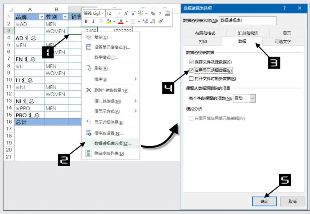 默认情况下,【启用显示明细数据】复选框处于勾选状态。
