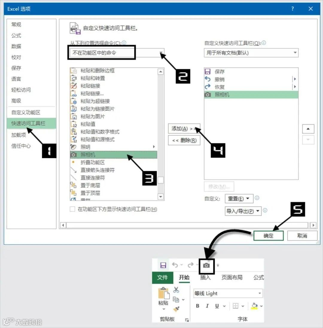图2 在【自定义快速访问工具栏】添加【照相机】按钮