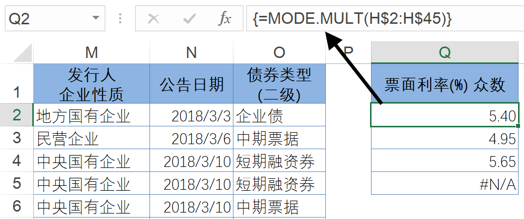 图 5-47 展示了某机构债券发行统计表的部分内容,需要根据 H 列的票面利率计算众数。
