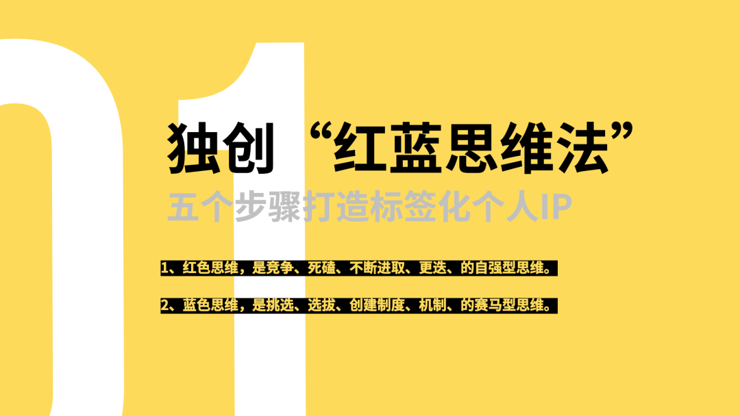 1、独创“红蓝思维法”5法,打造标签化个人IP